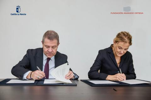 El presidente regional, Emiliano García-Page, y la presidenta de la Fundación, Flora Pérez Marcote, han suscrito este convenio durante un acto que se ha celebrado en la sede de la Fundación en A Coruña.